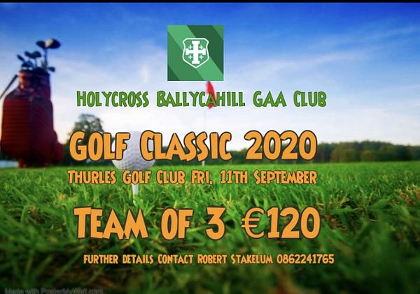 Holycross Ballycahill GAA club will host a Golf classic on Friday 11th September in Thurles Golf Club. There is a range of options available to support this fundraiser,